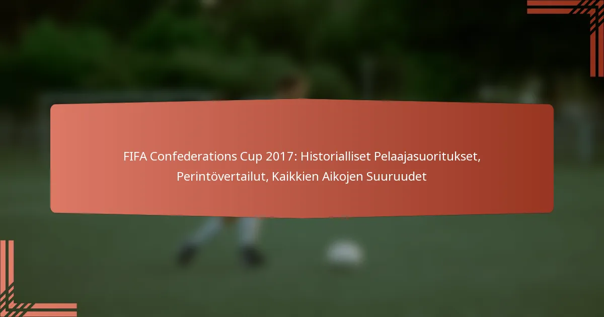 Vuoden 2017 FIFA:n konfederatioiden cupin pelaajatilastot osoittavat huomattavia eroja verrattuna aikaisempiin turnauksiin. Keskeiset mittarit, kuten tehdyt maalit, syötöt ja pelaajien tehokkuus, ovat vaihdelleet, mikä heijastaa joukkueiden strategioiden ja pelaajien kehityksen muutoksia vuosien varrella.