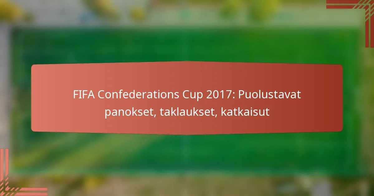 FIFA:n konfederatioiden cup 2017 esitteli useita erottuvia pelaajia, jotka loistivat erilaisissa suoritusmittareissa. Keskeisiä panoksia nähtiin maalinteossa, syöttämisessä ja puolustustehtävissä, mikä korosti heidän vaikutustaan turnaukseen.